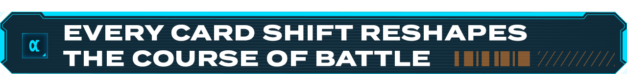 MECHBORN doesn’t use a traditional hand of cards. Instead, players start with 7 cards in their 'Conveyor Belt'. With each card that's played, a new one enters. Position support cards to unlock new abilities and combine with pilot skills to create combos that reshape the course of battle!